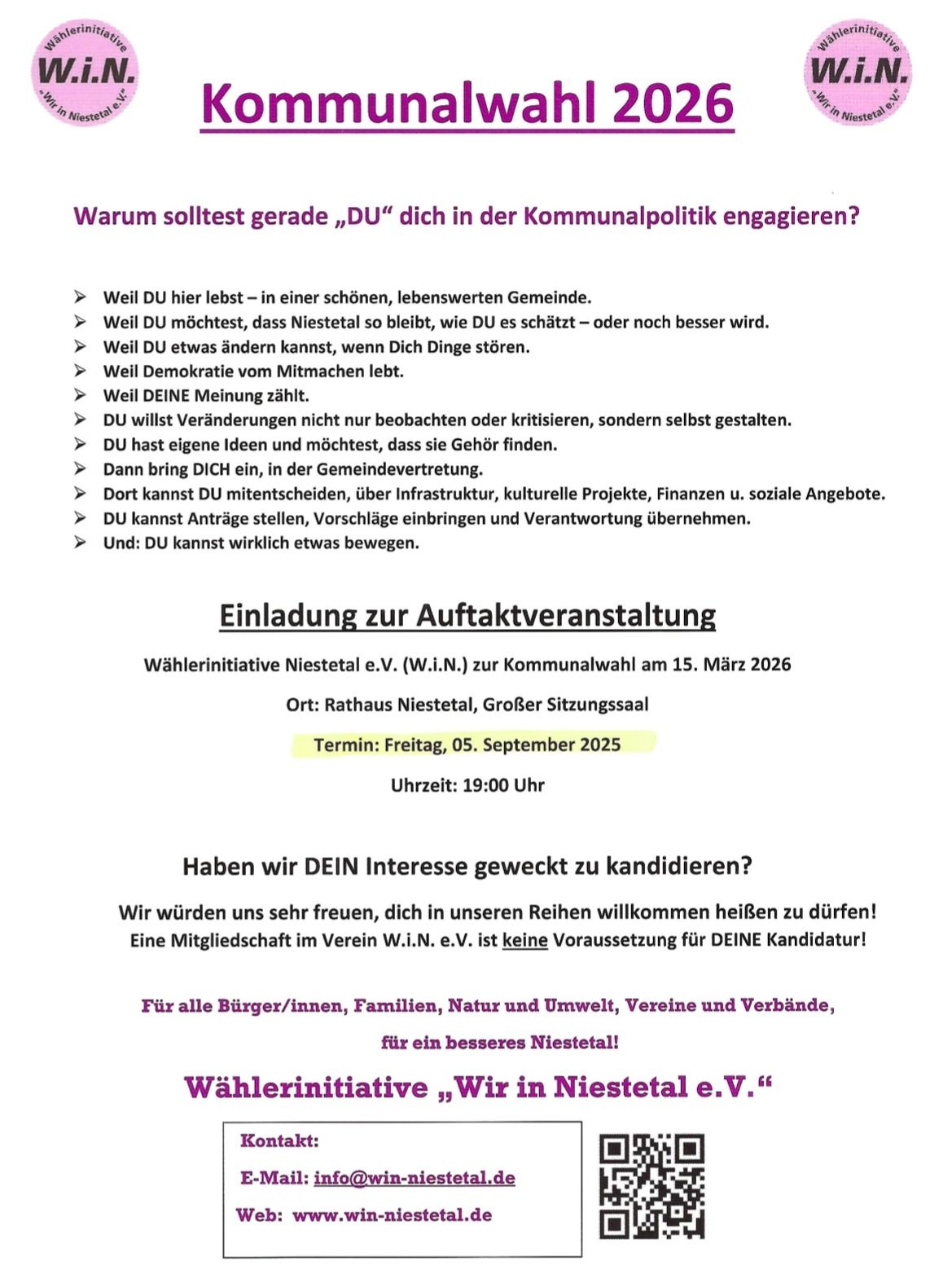„Wir in Niestetal“ (WIN) sind sehr dankbar und haben großen Respekt für seine Entscheidung,